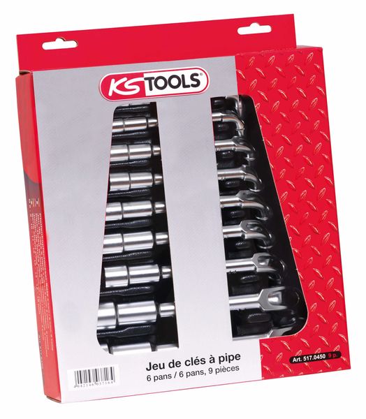 Jeu de clés à pipe débouchées - 6 x 6 pans - 9 pièces