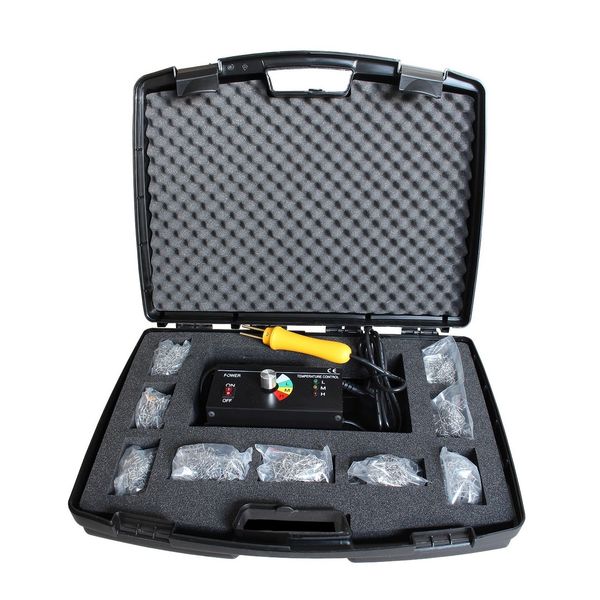 Cet appareil pour la réparation de plastiques (appelé aussi agrafeuse) est un système de réparation de tous types de plastiques par agrafes métalliques chauffées. Il permet de réparer rapidement des pare-chocs, des spoilers, des tableaux de bord, des phares, etc...