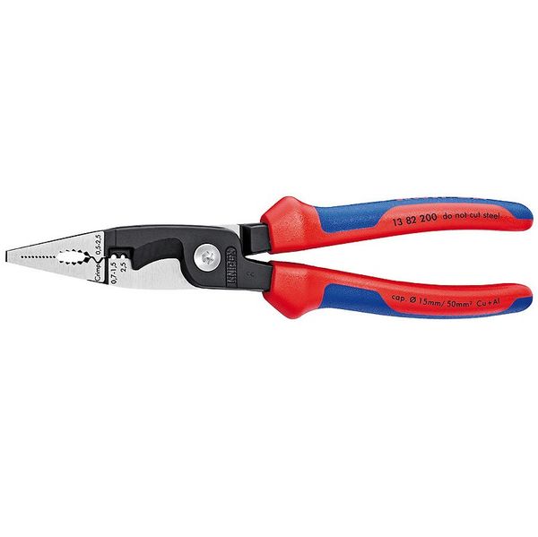 Cette pince multifonction pour installations électriques est idéale pour saisir les pièces plates et les pièces rondes, plier, ébavurer, couper les câbles, dénuder les fils et sertir les cosses.
