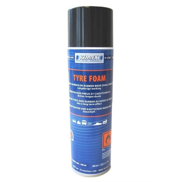 Cette mousse nettoie et protège les pneus et les caoutchoucs.